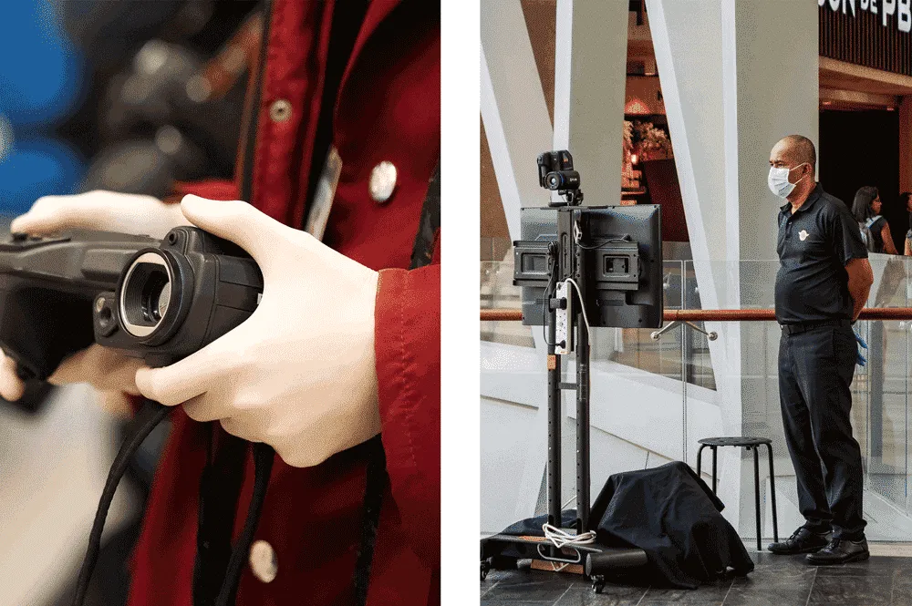 თერმული გამოსახულების კამერების გამოყენება ვირუსის გავრცელების დასაწყისშივე დაიწყეს. ამჟამად მათი გამოყენების შეწყვეტა არ იგეგმება. მაგალითად, ვაშინგტონის საერთაშორისო აეროპორტში მოწყობილობა უკონტაქტოდ გაზომავს მგზავრების სხეულის ტემპერატურას გამგზავრების ზონაში. თუ მონაცემები შეშფოთებას გამოიწვევს, მგზავრს შემოწმების ხელმეორედ გავლა მოუწევს, რის შემდეგაც მიიღება გადაწყვეტილება, შეუძლია თუ არა მას მგზავრობის გაგრძელება.