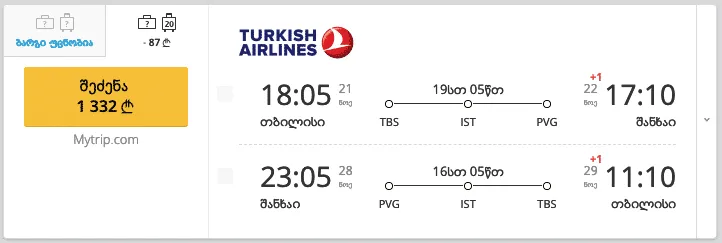 თბილისი - შანხაი - თბილისი