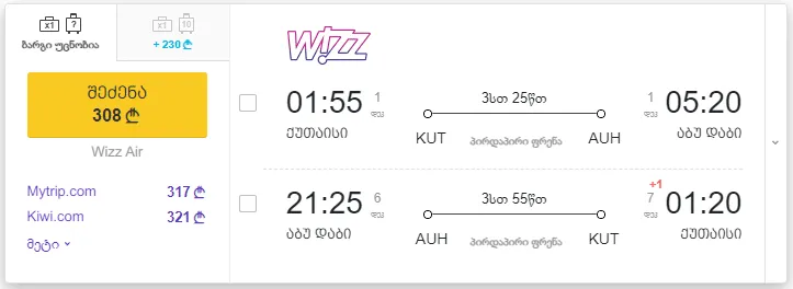 3. ქუთაისი - აბუ-დაბი