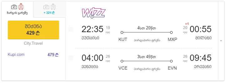 4. ქუთაისი - მილანი - ვენეცია - ერევანი