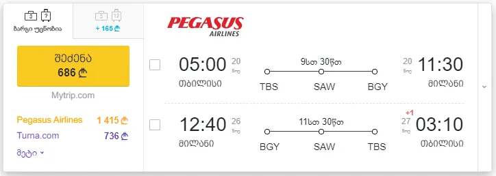 9. თბილისი - მილანი