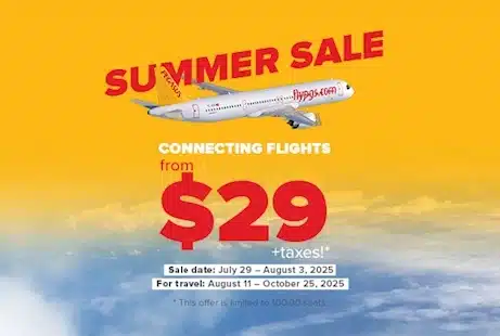 2025 წლის 29 ივლისიდან 3 აგვისტომდე პერიოდში Light პაკეტით (თურქეთში შიდა დამაკავშირებელი რეისების გარდა) განხორციელებული ყველა საერთაშორისო ტრანზიტული რეისი ფასდაკლებით იწყება 29 დოლარიდან + გადასახადები, 2025 წლის 29 ივლისი – 3 აგვისტო პერიოდში განხორციელებული შესყიდვებისთვის, მოგზაურობის პერიოდი 2025 წლის 11 აგვისტოდან 25 ოქტომბრამდე., სულ მხოლოდ 100.000 ადგილით!