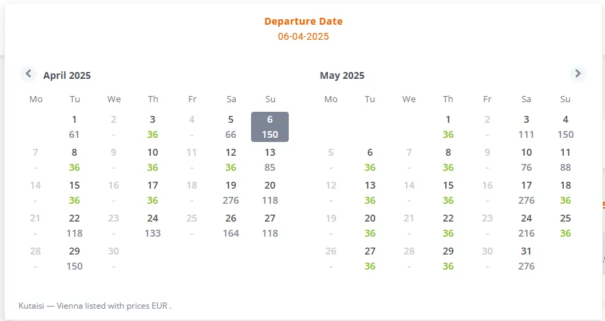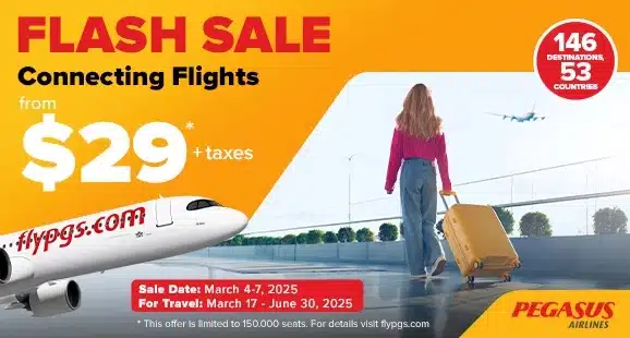 ფრენის თარიღები: გაყიდვის თარიღებზე დაჯავშნილი ბილეთები უნდა იყოს ფრენებისთვის გაფრენის დროით 2025 წლის 17 მარტს (თურქეთის ადგილობრივი დროით 00:01 საათიდან) - 2025 წლის 30 ივნისამდე (თურქეთის ადგილობრივი დროით 23:59 საათამდე).