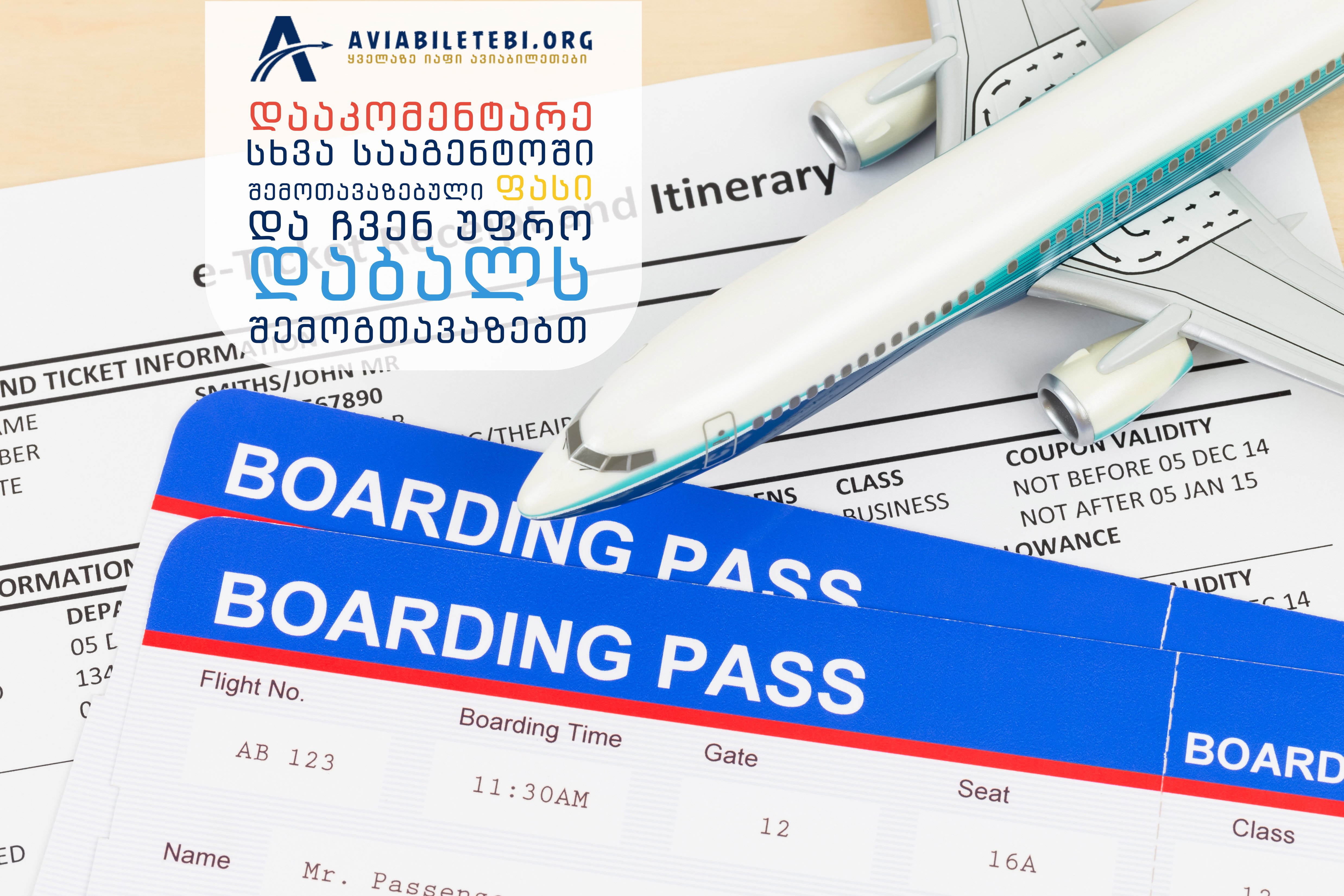 დააკომენტარეთ ავიაბილეთის მიმართულება თარიღი და ფასი რომელიც შემოგთავაზეს სხვა სააგენტოში, და ჩვენ უფრო დაბალი ფასს შემოგთავაზებთ.