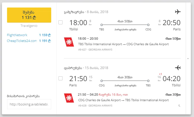 თბილისი - პარიზი - თბილისი | ეკონომ კლასი[/caption]