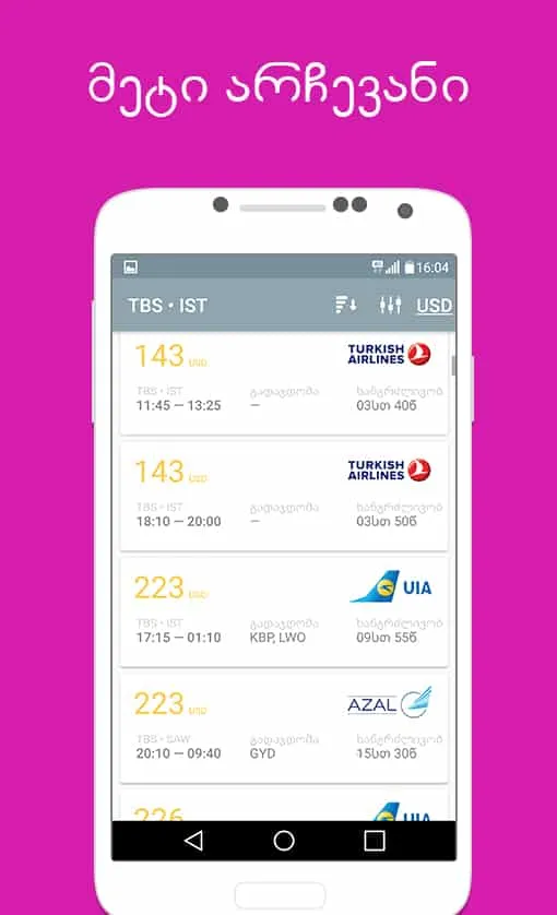 ავიაბილეთი იაფად? ამ კითხვაზე ჩვენი აპლიკაცია გასცემს ყველაზე ზუსტად პასუხს, რომელიც შეგიძლიათ გადმოიწეროთ