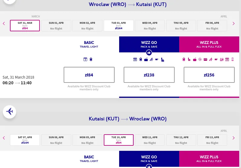 ავიაბილეთის ღირებულება იწყება 49 ლარიდან 1 მიმართულებით ვიზ ფასდაკლების კლუბის წევრებისთვის 25,99 ლარიდან.