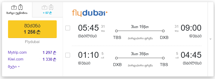 - სავარაუდო ფასი: 365 ლარი თბილისიდან; 348 ლარი ქუთაისიდან
