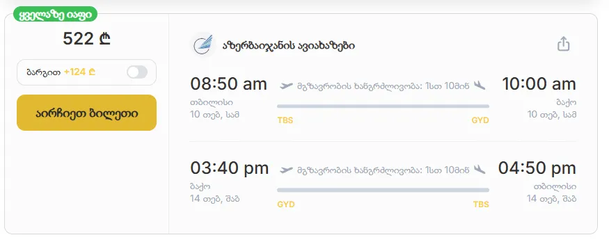 ბილეთების შეძენა შესაძლებელია 2026 წლის 18 იანვრამდე. მოგზაურობას კი შეძლებთ 2026 წლის 1 თებერვლიდან 17 მარტამდე პერიოდში განხორციელებულ რეისებზე.