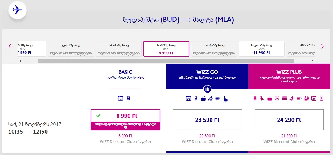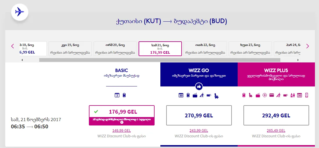 ბილეთების შეძენა შესაძლებელია ავიაკომპანიის ოფიციალურ გვერდზე wizzair.com ryanair.com