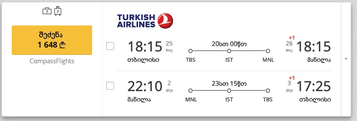 თბილისი - მანილა - თბილისი