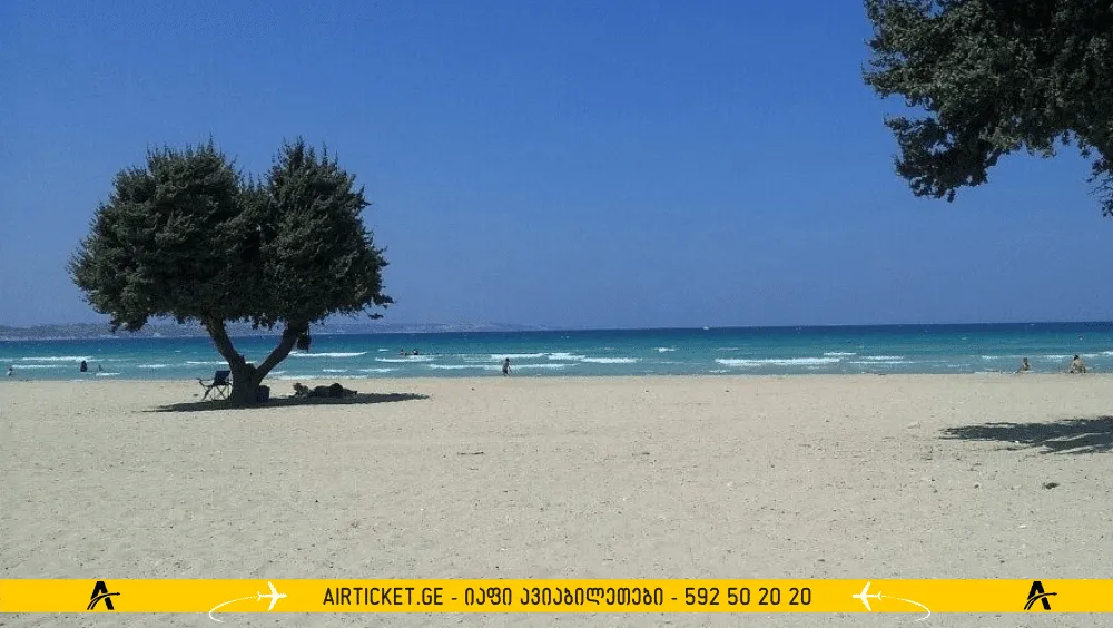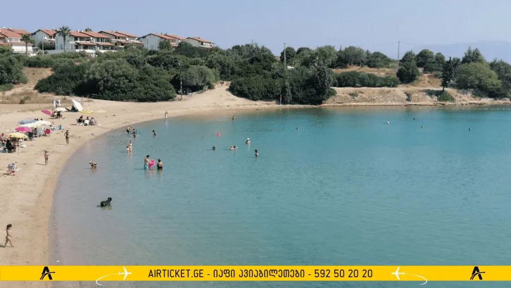 ადგილობრივი პლაჟის სუფთა პლაჟი და გამჭვირვალე წყალი დასტურდება ლურჯი დროშის ჯილდოთი. სანაპირო ზოლის სიგრძე ერთ კილომეტრზე ოდნავ ნაკლებია. სანაპირო დაფარულია წვრილი, სასიამოვნო ქვიშით. ზოგჯერ წყალში კენჭებსაც კი ნახავთ. დასავლეთი ბრტყელია, მოსახერხებელია ბავშვებთან ერთად ცურვისთვის.
