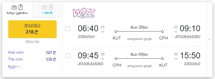 1. ქუთაისი - კოპენჰაგენი