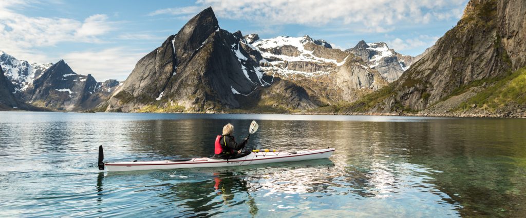 დღე 5: კაიაკინგი ფიორდებში დაინახეთ რეინეს გარშემო აღმართული მთები სულ სხვა რაკურსით — წყლიდან ! კაიაკით გასეირნება Reinefjorden-ში დაუვიწყარი გამოცდილებაა . ტურები ტარდება გამოცდილი გიდის თანხლებით და დამწყებთათვისაც სრულიად უსაფრთხოა.