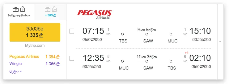 ტურის ღირებულება 2 ადამიანის გამგზავრების შემთხვევაში: