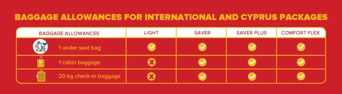 გარდა ამისა, მგზავრებს Saver, Saver Plus და Comfort Flex პაკეტებით აქვთ 20 კგ სარეგისტრაციო(ჩასაბარებელი) ბარგის უფლება.