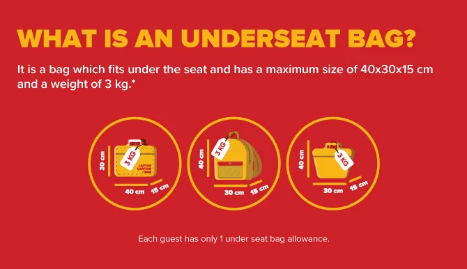 | 1 პერსონალური ნივთები სავარძლის ქვეშ მაქს. 3კგ(ზომები 40x30x15) | ✅ | ✅ | ✅ | ✅ |