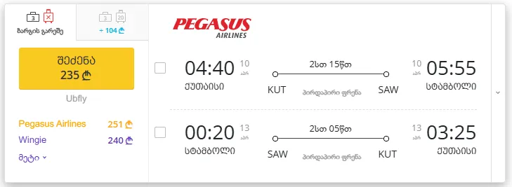 ქუთაისი - სტამბოლი - ქუთაისი