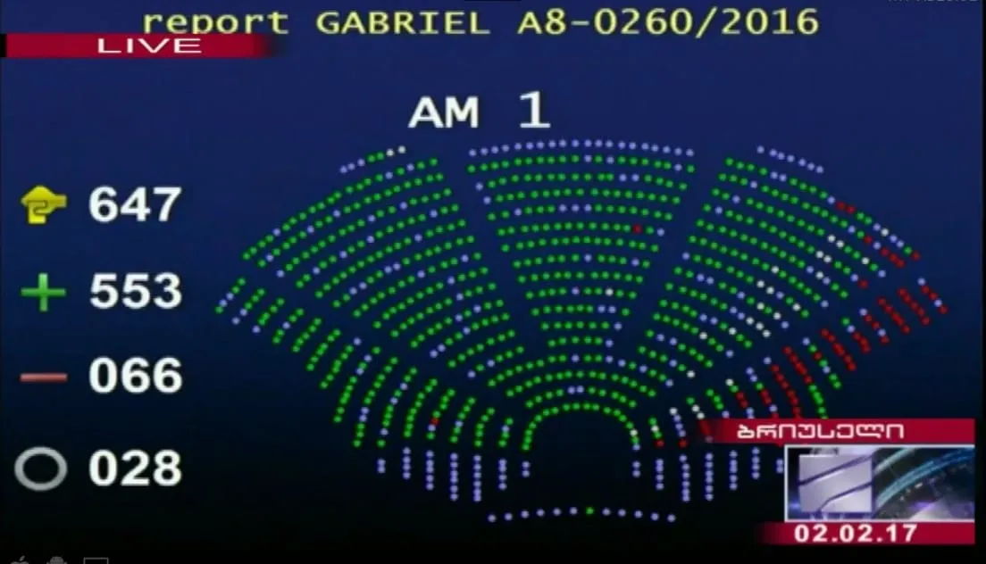 ბრიუსელში გაიმართა ევროპარლამენტის კენჭისყრა, სადაც დამტკიცდა 553 ხმა 66-ის წინააღმდეგ, რომ საქართველოს მოქალაქეებს შეეძლებათ ევროპაში უვიზოდ