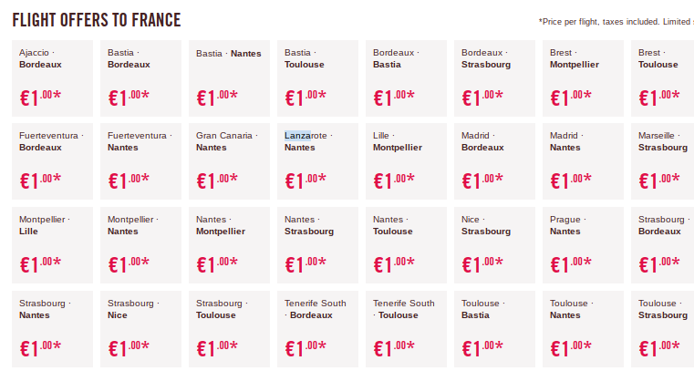 Volotea შავი პარასკევის ფასდაკლება: ავიაბილეთების ღირებულება 3,2 ლარი ერთი მიმართულებით ევროპის გარშემო! დაჯავშნეთ იაფი ავიაბილეთები ავიაკომპანია ვოლოტეაზე საუკეთესო ფასად. მოგზაურობის თარიღები მოიცავს ზამთრის სეზონს 2017 და 2018 წელს! არ გამოტოვოთ ვოლოტეას ფასდაკლება.