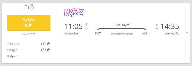 გთავაზობთ შერჩეულ ფრენებს ჩვენი სისტემიდან