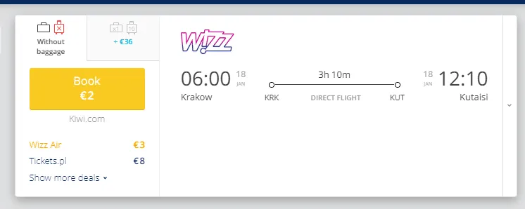 1 გზის ღირებულება ქუთაისის მიმართულებით: 1.99 ევრო
